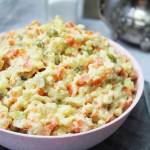 czarrna od kuchniSyta, a dodatek ogórków i selera sprawia, że nie jest mdła. Składniki ok 150 g kuskusu 1 puszka groszku 3-4 ogórki kiszone 1 słoik selera konserwowego 300 g szynki drobiowej … Czytaj dalej Sałatka z kuskusem