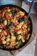 Kremowe gnocci w sosie pomidorowo-paprykowym z kukurydzą i szpinakiem 94Chodźcie wszyscy do stołu, bo już parują na nim pyzate, mięciutkie gnocchi w pysznym kremowym sosie! Podczas gdy za oknem przedwczesne Przedwiośnie powoli rozpakowuje swoje bagaże
