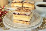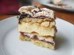 PANI WALEWSKA / PYCHOTKA 423Ciasto kuszące słodyczą przełamane kwaskowym dżemem z czarnej porzeczki, który nadaje ciastu niepowtarzalny smak. Z delikatną bezą posypaną płatkami migdałowymi. ki (forma35x20 cm) Ciasto