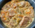 Polędwiczki wieprzowe w sosie własnym 352Kolejne proste i smaczne danie. Polędwiczki wieprzowe będą jeszcze wielokrotnie pojawiać się na moim blogu, ponieważ jest to jedno z naszych ulubionych mięs. Można je przyrządzać na wiele różnych sposobów. A dziś polędwiczki w sosie własnym. U nas podane z kluskami na parze. Składniki: 2 polędwiczki wieprzowe 1 cebula 100g masła 300ml bulionu 50ml słodkiej śmietany sól pieprz papryka Polędwiczki