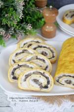 Roladki z wkładką 215wyższym naczyniu, żeby cała galareta zalała roladki u mnie są zalane tylko do połowy i ja mam wymierzone już 40 plastrów wędliny na dwie tacki ale trzeba sobie samemu sprawdzić ile będzie potrzebnych. Zakupy: - 40 plastrów dużych wędliny - 5 jajek - szczypiorek - pieczarki marynowane - żelatyna ( na 2,5 litra wody) - 1 kostka rosołowa drobiowa - majonez - śmietana - sól, pieprz do smaku(...)wody, wsypuję żelatynę i mieszam wszystko razem.Wymieszaną żelatynę doprawiam do smaku solą i pieprzem i odstawiam do ostygnięcia a nawet do lekkiego ścięcia wtedy lepiej się zastyga na roladkach. Do posiekanego szczypiorku i pieczarek dodaję pokrojone jajka, 2- 3 łyżki majonezu i 1 łyżkę śmietany. Wkładka nie może być bardzo lejąca ponieważ przy zwijaniu wszystko nam wypłynie bokami. Jeśli