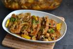 Schab zapiekany z pieczarkami 8871Pieczarki i schab to połączenie bardzo dobre. Sięgam po ten duet często robiąc roladki schabowe z pieczarkami lub serwując tradycyjnego schabowego w towarzystwie smażonych pieczarek. Tym