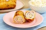 Schab faszerowany jajecznicą 196Schab faszerowany jajecznicą i szpinakiem, inaczej roladki schabowe to propozycja na niedzielny obiad. Przeważnie ze schabu przygotowujemy kotlety schabowe lub rolady ze schabu. Rolada to przeważnie płat mięsa, lekko rozbity tłuczkiem, doprawiony według upodobań, w środku ma smakowite dodatki, następnie ciasno zwinięte, panierowane w jajku, bułce tartej i usmażone lub usmażone saute (soute) bez panierunku . Uwielbiam mięso, oraz(...)jajecznicą , czemu by tego nie połączyć? Schab zwijany z jajecznicą i szpinakiem to idealne połączenie smakowe i wizualne po pokrojeniu w plastry. To pyszne połączenie, podobnie jak w roladkach z kurczaka z mozzarella i szynką szwarcwaldzką. Jak przygotować roladki ze schabu faszerowane jajecznicą? Składniki : 3 plastry schabu, 3 jajka, 1 mała cebula, listki świeżego szpinaku bez ogonków,, 2 łyżki masła