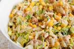 Sałatka z makaronem orzo i kurczakiem 86Sałatka z kurczakiem i makaronem orzo to idealna propozycja na szybki, lekki i pożywny posiłek, który z powodzeniem sprawdzi się zarówno na kolację, jak i rodzinne