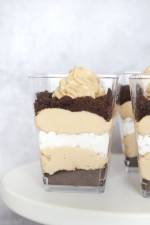 Deser cappuccino w pucharkach 106Ten pyszny i prosty deser cappuccino w pucharkach smakuje i wygląda jak znane ciasto Cappuccino z kokosem i maślanym kremem budyniowym. Deserki są eleganckie, dzięki czemu