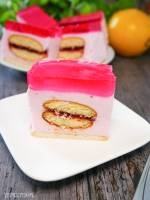 Truskawkowo – brzoskwiniowy serniczek na zimno 174Błyskawiczne ciasto bez pieczenia. Przygotowanie zajmuje dosłownie 15 minut. Galaretki o dwóch różnych smakach sprawiają, że ciasto zaskakuje smakiem i trzeba dobrze się wsmakować aby odgadnąć
