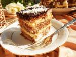 Łaciate ciasto biszkoptowe z masą serową 166Bardzo delikatne dwukolorowe ciasto biszkoptowe przełożone pyszną masą sernikową zadowoli nie jednego łasucha, do tego wierzch z polewy czekoladowej i wiórków kokosowych, palce lizać. Przepis na