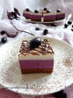 Ciasto winogronowe z czerwonym winem 182Ciasto czekoladowe z dodatkiem czerwonego wina, na nim pianka z czarnych winogron bezpestkowych i pianka z bitej śmietany. Wierzch udekorowałam polewą czekoladową i winogronami. Całość smakuje