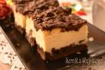 MURZYNKOWY SERNIK Z ŻURAWINĄ 200miałam chęć na murzynka i na sernik, więc upiekłam 2 w 1 SKŁADNIKI Murzynek: forma o wymiarach 21x26 cm ½ kostki masła, ½ szkl. cukru, 6 łyżek mleka, 2 łyżki kakao, ¾ szkl. mąki, 1 łyżeczka proszku do pieczenia, 2 jajka Masa serowa(...)twarogu, 2 jajka, ½ szkl. cukru, 3 łyżki wiórek kokosowych, 1 budyń waniliowy, 1 łyżeczka przyprawy do sernika Skworcu ¼ szkl. oleju, 2 łyżki kremówki Dodatkowo: suszona żurawina WYKONANIE Murzynek: Masło rozpuszczamy razem z cukrem, mlekiem i kakao. Odstawiamy do wystygnięcia. Wystudzoną masę przelewamy do miski, dodajemy żółtka, mąkę i proszek do pieczenia a na końcu pianę ubitą