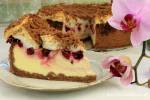 Ciasto Joconde z sernikiem na zimno i musem jagodowym. 124Ciasto Joconde (ang. Joconde cake or biscuit) jest lekkim migdałowym ciastem biszkoptowym. Najczęściej używany jest do tortów literkowych , kolorowych rolad , tortów typu Opera oraz do dekorowania