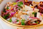 Śledź w śmietanie z ziemniakami. Prosty obiad w starym stylu, który bardzo lubię. PRZEPIS 152Wiem, to kontrowersyjne połączenie, wiele osób nie potrafi wyobrazić sobie zimnego śledzia w śmietanie z gorącymi ziemniakami na jednym talerzu. A to przecież składniki, które świetnie do siebie pasują. Taki obiad kiedyś przygotowywały nasze mamy i babcie. Bardzo lubię, szczególnie w gorące dni. Mam dla was przepis wideo. Przepis na śledzia w śmietanie z ziemniakami Składniki: 6 wymoczonych filetów śledziowych(...)alla matias, 3 małe cebule, 3 łyżki dobrego majonezu, 6 łyżek śmietany 18 proc., pół jabłka, 2 łyżki octu winnego, pieprz, do podania ugotowane ziemniaki. Śledź z ziemniakami. Przepis wideo: Przepisy na ryby Artykuł Śledź w śmietanie z ziemniakami. Prosty obiad w starym stylu, który bardzo lubię. PRZEPIS pochodzi z serwisu Kulinarna Polska | Przepisy, gotowanie, jedzenie