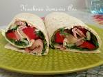 Bajeczna KuchniaSKŁADNIKI: 1 tortilla pszenna 1 /2 papryki czerwonej 1 serek topiony trójkąt szczypiorek 1 garść mix sałat PRZYGOTOWANIE: Tortillę pszenną smaruję na całej długości 1 trójkącikiem serka topionego np.z szczypiorkiem. Następnie posypuję mixem sałat. Paprykę czerwoną myję i kroję w paski kładę na tortillę. Tortille zawijam. Kroję na dwie części. MoŻna podgrzać w piekarniku
