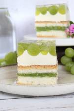 Ciasto z winogronem i galaretką na biszkopcie 118Przepis na orzeźwiające ciasto z winogronem i galaretką na biszkopcie. Ciasto składa się z kilku warstw, które łączą się w przepyszny deser, idealny na letnie dni