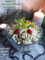Sałatka selerowo-orzechowa z kurczakiem i winogronem 230Sałatka z kurczakiem a'la gyros,selerem naciowym,różowym winogronem i orzechami włoskimi przygotowana na imprezę sylwestrową. Sylwester minął,sałatka zjedzona, na pewno powtórzę ją jeszcze