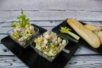 Sałatka z selerem naciowym, winogronem i kukurydzą 644niskokaloryczne, pełne witamin i składników mineralnych. Idealne jako samodzielna przekąska lub dodatek do zup/sałatek. W związku z powyższym zachęcam do przygotowania 3 składnikowej sałatki - z selerem naciowym, ciemnym winogronem i kukurydzą. Prosto, szybko i bardzo smacznie. Składniki na 3-4 porcje: 3 łodygi selera naciowego 1 kiść czerwonego winogrona ½ puszki kukurydzy sos 2 łyżki jogurtu naturalnego 1 łyżka(...)majonezu sól, pieprz Seler naciowy umyć, przeciąć na pół i pokroić w cienkie półtalarki. Kukurydzę odsączyć. Winogrono umyć, przeciąć na pół i ewentualnie usunąć pestki. Jogurt naturalny wymieszać z majonez. Sos przyprawić solą oraz pieprzem. Do wysokiej miski wsypać selera, winogrono i kukurydzę. Na sam koniec, całość zalać sosem majonezowo-jogurtowym. Wymieszać. Sałatkę schłodzić