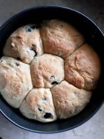 Ciasto na zakwasie lievito madre z rodzynkami i cynamonem 140Wielka baba z pępkiem, ciasto na zakwasie, z rodzynkami i masą cynamonową W marcowej Piekarni Amber wspólne wypiekanie ciasta na zakwasie lievito madre z przepisu z