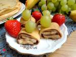 NALEŚNIKOWE KORECZKI Z CZEKOLADĄ I BANANEM NA JEDEN KĘS 221Pomysłów na naleśniki jest naprawdę sporo. Koreczki z naleśników to doskonały pomysł na przekąskę imprezową zarówno dla dorosłych jak i dla dzieci. Posmarowane masłem czekoladowym, przełożone