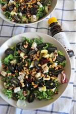 Sałatka z serem pleśniowym i winogronami 183Lekka, smaczna sałatka z orzechową nutą. Świetnie sprawdzi się jako kolacja lub przekąska na przykład do wina. Powstała z kilku składników a ich smaki tak