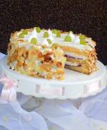 torcik z białym winem 169Wypieki z białym winem to jedne z moich ulubionych, zwłaszcza te w których dodatkowo jest nuta porzeczki. Robiąc ten inspirowałam się tortem Malakoff, z tym że