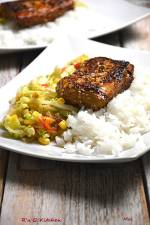 Kurczak Dak Bulgogi z surówką i ryżem 163Przepis na to szybkie, koreańskie danie pochodzi z niesamowicie apetycznego bloga Facet z przepisem . Gorąco polecamy. Troszkę dodatki po swojemu zrobiliśmy, ale wyszło niesamowicie pysznie. Składniki