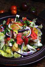 Sałatka z wędzonym łososiem 169Sałatka z wędzonym łososiem, sałatą lodową i pysznymi dodatkami. 15-20 min i gotowe. Składniki 1/2 główki sałaty lodowej 1 czerwona cebula 4 rzodkiewki 150 g