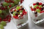 Deser z czerwoną porzeczką i winogronami 150Kolejny bardzo szybki deser szklankowy, który może zrobić każdy, bez względu na umiejętności. Krem na bazie serka mascarpone pasuje do wszystkich owoców. Tym razem proponuje połączyć