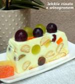 lekkie ciasto z winogronem 349Ciasta z winogronami od zawsze podobały mi się wizualnie. I chociaż winogrono jest rzadko używanym owocem do ciast, to do tych na zimno nadaje się