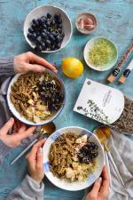 MAKARON ŻYTNI Z TYMIANKIEM, KURCZAKIEM W SOSIE CYTRYNOWO -MIODOWYM Z KARMELIZOWANYM CIEMNYM WINOGRONEM 198Pyszny, zdrowy i szybki obiad. W dzisiejszych czasach na dobry i zrównoważony posiłek składają się chyba trzy składowe: zdrowe - coraz częściej czytamy etykiety, co raz częściej