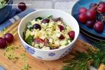Sałatka z winogronami i rukolą 211Uwielbiam sałatki, które mają niewiele składników. Są one szybki i zazwyczaj tanie w wykonaniu. Sałatka z winogronami i rukolą to właśnie jedna z takich sałatek. Królują