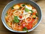 Swojskie jedzonkoPyszna i sycąca zupa na bazie mleka kokosowego, kolendry i kurkumy z dodatkiem łososia, batata, dyni, papryki, glonów wakame, grzybów shitake i makaronu ryżowego. Uwielbiam kuchnię