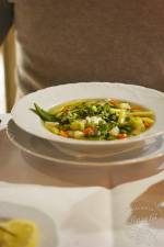 Zupa grzybowa aksamitna 216Wykwintna zupa grzybowa. To nie zupa krem – ale na podniebieniu jest nieziemsko lekka, miękka – aksamitnie kremowa. Skondensowany smak grzybów – i tych suszonych, i świeżych – rewelacyjnie podkreślają pieprz i sos Worcestershire, a całość łagodzi i równoważy słodka śmietanka. Pieczarki oczyszczamy z piasku lub ziemi suchym, szczeciniastym pędzelkiem. Grzybów nie myjemy – zbyt szybko chłoną wodę i w ten sposób rozrzedza(...)Szalotki obieramy i kroimy je – nie bardzo drobno. Czosnek obieramy i przeciskamy przez praskę. W garnek wlewamy 1,5 litra wody, wrzucamy suszone grzyby, stawiamy garnek na gaz i pod przykryciem doprowadzamy wodę do wrzenia. Gotujemy grzyby suszone pod przykryciem, na małym ogniu, około 25 minut. Po tym czasie wrzucamy do garnka dwie kostki bulionowe, mieszamy do rozpuszczenia. Na patelni