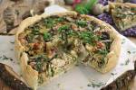 Wegańska tarta z kurkami i młodymi porami 221opakowanie ciasta francuskiego 400 ml niesłodzonego mleka sojowego 50 g mąki kukurydzianej 200 g grzybów 4 młode pory (biała część, resztę zostawiłam do zupy) lub ewnetualnie 2 średnie cebule płaska łyżeczka pieprzu płaska łyżeczka gałki muszkatołowej płaska łyżeczka czosnku suszonego (lub 2 ząbki świeżego) łyżeczka soli opcjonalnie i do przyprania 2 łyżki oliwy grzybowej orzechy laskowe natka pietruszki(...)głębokiej patelni lub garnku rozgrzej 2 łyżki oleju roślinnego i wrzuć grzyby. Jeżeli używasz kurek to wystarczy je smażyć 2-3 minuty, po czym dodaj pory i przyprawy. Smaż wszystko razem kolejne 3 minuty i przełóż całość do dużej miski. Do tego samego garnka, w którym smażyłeś/łaś grzyby wlej mleko i dodaj mąkę kukurydzianą, dokładnie wymieszaj i zagotuj (zajmie