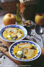 Dyniowa na cydrze z maślanymi jabłkami 246W Kuchni wciąż bawię się w odcienie słonecznej żółci i pomarańczy :) Dziś wielki moment, bo oto Królowa Jesieni otwiera dyniowy sezon na blogu! Zup i kremów