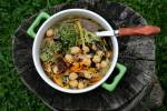 Egzotyczna zupa wegetariańska z cieciorką, mun i makaronem ryżowym 195Egzotyczna zupa ekspresowa :) Cebula czerwona i marchewki w słupki pokrojone, grzyby mun zaparzone, wszystko lekko przesmażone następnie w bulionie warzywnym uduszone. Makaron ryżowy z tapioką