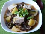 Gulasz doenjang jjigae z tofu i cukinią, czyli koreańska zupa miso 276Doenjang jjigae to tradycyjny gulasz w Korei złożony z warzyw, tofu i mięsa na bazie sfermentowanej pasty sojowej doenjang. Doenjang, to obok sosu sojowego, gochugaru (ususzonych