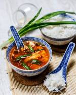 Koreańska zupa z kurczakiem i szczypiorem 322Bardzo delikatny drobiowy bulion, pikantne dodatki, góra aromatycznego szczypioru i soczyste mięso kurczaka. W Korei ta zupa podawana jest najczęściej w lecie – jest pobudzająca, lekka i