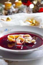 Wigilijny barszcz czerwony na zakwasie z uszkami 154Jestem dość wybredna, jeśli chodzi o czerwony barszcz. Jak dla mnie, powinien być on dość pikantny, lekko kwaskowaty, wyrazisty i powinien mieć piękną, głęboką barwę. Poza