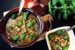 Zupa zdrowia, rozpalająca kubki smakowe 186Zupa zdrowa i na dodatek ekspresowa, o nucie pikanterii dająca dużo energii. Seler naciowy, cebula, pieczarki, cieciorka, marchew z ziołami zmieszane, przyprawami doprawiane, kuskusem zagęszczana, z