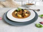 STEK CIELĘCY Z GNOCCHI I GRZYBAMI 121Krótko grillowane jędrne mięsko, niesamowicie leśny i smaczny sos grzybowy z brązowymi całymi kapeluszami i gnocchi! Stek cielęcy z gnocchi i grzybami to przesmaczna podróż do