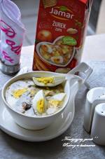 ,,Tradycyjny żurek’’ 156Do przygotowania żurku wykorzystałam produkty Jamar, Ole! Stovit, oraz ePrezenty Składniki: 100 g boczku 100 g kiełbasy ½ litra żurku Jamar 1 litr bulionu warzywnego (najlepiej z