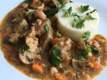 Gulasz z pieczarkami 195Gulasz z pieczarkami to pyszne i łatwe do przygotowania danie obiadowe. Sycący gulasz zawiera mięso, grzyby, dużo warzyw i aromatyczne przyprawy. Do zrobienia gulaszu najlepiej