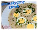 Żurek z kiełbasą i wędzonym boczkiem 175Lekko kwaśna aromatyczna zupa z mięsną wkładką – doskonała zarówno na co dzień, jak i na wielkanocny stół Możesz przygotować ją w sposób tradycyjny