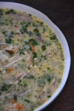 Zupa grzybowa 173Zupa grzybowa przygotowywana jest na bazie wywaru mięsno-warzywnego lub warzywnego, z dodatkiem świeżych lub suszonych grzybów. Ja swoją zupę grzybową przygotowałam na bazie rosołu, z