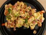 Jajecznica z pomidorami i szynką 222Jajecznica z pomidorami i szynką to pomysł na smaczne i bardzo pożywne śniadanie. Najlepiej smakuje podana ze świeżym pieczywem posmarowanym masełkiem. Do jej przygotowania możecie użyć