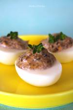 Jajka faszerowane z pieczarkami 128Jeśli na Wielkanoc lub rodzinne spotkanie planujesz przygotować niewielkie przystawki na jeden lub dwa kęsy, przygotuj jajka faszerowane z pieczarkami. Ich przygotowanie zajmuje niewiele czasu, można