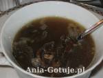 C - Zupa grzybowa na białym winie 223podpatrzyłam w którymś z amerykańskich programów kulinarnych, tradycyjnie wprowadziłam swoją korektę i mogę polecić ją jako pyszną i elegancką propozycję na domowe przyjęcie:) Zupa grzybowa na białym winie Składniki: 0,5 kg podgrzybków świeżych/mrożonych, 0,5 kg pieczarek 1-2 marchewki(...)szklanek wody 1/4 szklanki mąki Na rozgrzanym maśle z oliwą z oliwek dusimy posiekane ogonki z grzybów wraz z marchewką pokrojoną w kostkę i cebulą (również w kostkę). Zalewamy 6-cioma szklankami wody, dodajemy gałązkę tymianku i gotujemy pół godziny. Pora kroimy w krążki i dusimy na oliwie
