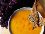Zupa z dyni i batata z krakersami z quinoy i jarmużu (bez glutenu, bez laktozy wegańska) 187ciężkich świątecznych dań, więc postanowiłam zrobić jakąś zupkę, koniecznie rozgrzewającą i warzywną. Miałam jeszcze dynię, znalazłam batata, dodałam trochę suszonych pomidorów i ostrego sosu i zrobiłam zupę krem, a do niej fantastyczne chrupiące krakersy z quinoy i modrego jarmużu. Składniki: 1 szklanka ugotowanej białej quinoy 5 liści jarmużu 1szklanka mąki z czerwonej soczewicy 1 łyżka babki płesznik