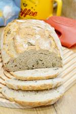 Chleb z czosnkiem niedźwiedzim i siemieniem lnianym 101Ostatnio mam fazę na domowe chleby i raz po raz sobie wypiekam. Ten jest bardzo szybciutki do przygotowania, tylko czas wyrastania i pieczenia jest długi. Mimo to polecam, jest pyszny. Będzie też świetny na świateczny stół do sałatek. Składniki: 500 g mąki pszennej 400-450 ml ciepłej wody 15 g świeżych drożdży 2 łyżeczki cukru(...)Drożdże rozpuścić z wodą i cukrem. Dodać pozostałe składniki i wymieszać łyżką. Ciasto powinno mieć luźną konsystencję. 2. Formę keksówkę posmarować masłem, obsypać bułką tartą. Wyłożyć ciasto na chleb, przykryć i odstawić na 60 minut do wyrośnięcia. 3. Wyrośnięty chleb spryskać z wierzchu wodą, piec 10 minut w 200*C, a 50 minut w 180*C. Upieczony chleb