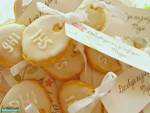 Pomysł na podziękowania dla gości - Komunia. 253roku przeżywaliśmy kolejną Komunię Świętą , postanowiliśmy umilić naszym gościom pierwsze chwile na przyjęciu , (które ze względów strategicznych przełożyliśmy na kolejny tydzień) ;) . W początkowym zamyśle miał być to serduszka z masy solnej, jednak dzień przed samym przyjęciem wpadłyśmy z córcią na inny pomysł, który okazał się strzałem w dziesiątkę. Zrobimy ciasteczka takie niby hostie. Nawiązują do świętowanej uroczystości, są miłym gestem(...)łyżek cukru 1/2 opakowania cukru migdałowego 1/2 łyżeczki proszku do pieczenia Ponadto: gotowy lukier biały pisak do dekoracji ciastek wstążka Z podanych składników zagniatamy dość szybko ciasto. Odstawiamy do lodówki na około 30 min. po czym, rozwałkowujemy ciasto na cienki placek 4-5mm . Okrągłą foremką wykrawamy ciastka, układamy na dużej blaszce wyłożonej papierem do pieczenia i robimy