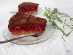 Kakaowa pianka z wiśniową frużeliną 209wakacje często pojawiają sie u mnie ciasta bez pieczenia, oczywiście obowiazkowo z owocami. Ze względu na alergię mojej córy na białko mleka krowiego, dziś kolejne ciasto bez laktozy. Chrupiący spód, pyszna wiśniowa frużelina i do tego kakaowa pianka stanowią całkiem zgrane trio, które na pewno długo nie postoi w Waszych lodówkach, zatem jeśli znajdziecie jeszcze gdzieś wiśnie bierzcie się szybko(...)szklanki daktyli 2 szklanki płatków owsianych Daktyle zalewamy wrzątkiem i odstawiamy na pół godziny. Po tym czasie odlewamy wodę i blendujemy z płatkami owsianymi. Tak przygotowaną masą wylepiamy dno tortownicy (26cm). Frużelina wiśniowa: 500 g wiśni 5 łyżeczek żelatyny 3 łyżki cukru 1 łyżka soku z cytryny 1 łyżeczka mąki ziemniaczanej rozpuszczona w 1 łyżce wody Żelatynę zalewamy wodą